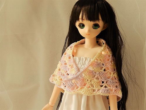 途中まで普通に長方形のストールにするつもりでしたが、なんとなーく