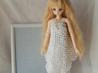 もっと普通のストレートヤーン、いっそレース糸20番で編めば良かったかも。