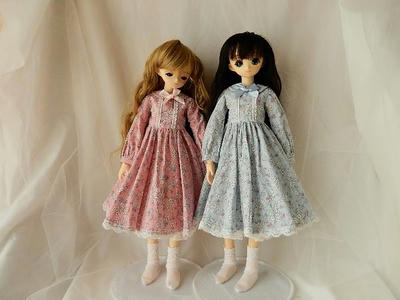 45cmの白妙には、袖口カフスにして襟を付け、裾は共布フリルで。