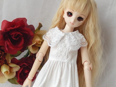 でも生地は綿ローン。前回の40cm用ワンピースのよりちょっとだけ高級品です。