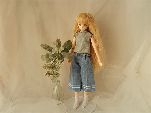 ちょっとつんつるてんで、最初は綿レースを足してました。