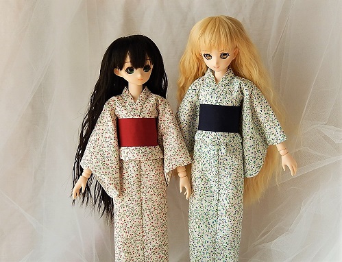 昔、ドール服づくりを始める前に買った1Mの布で修正した浴衣を縫いました。