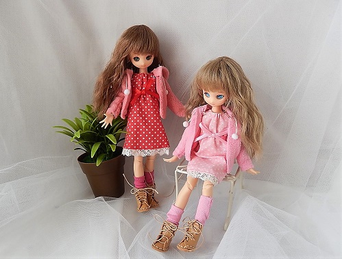 瀬那と飛鳥には以前、オビツ21用にリメイクしたエリーちゃん服を。