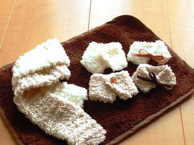一応各二枚ずつ編んで、お揃いに備えてあります。