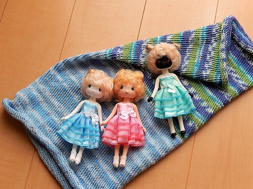 未だにメイクしてない半眼眠り姫の上掛けとして編みました。