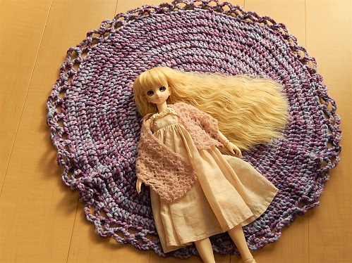 去年編んだネックウォーマーをほどいて、残り毛糸と共に円座を編みました。