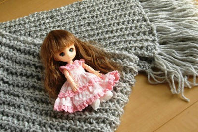 17cm×150cmくらい編んで、家人のリクエストによりフリンジをつけました。