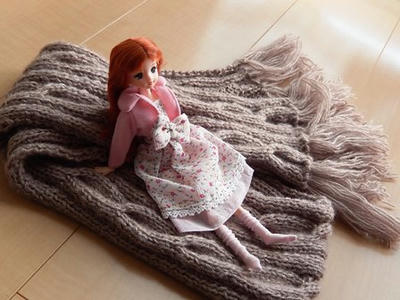 モヘアリー第四弾。縄編みに挑戦してみました。