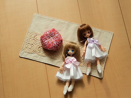 ひつじぃとうさぎぃには、なんとなくつくった刺繍ワンピを。