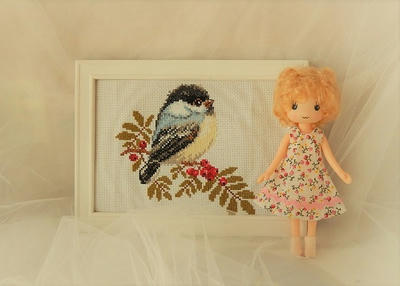 難しいのは羽根くらいで、赤い実は3色、葉っぱに至っては1色のベタ刺し
