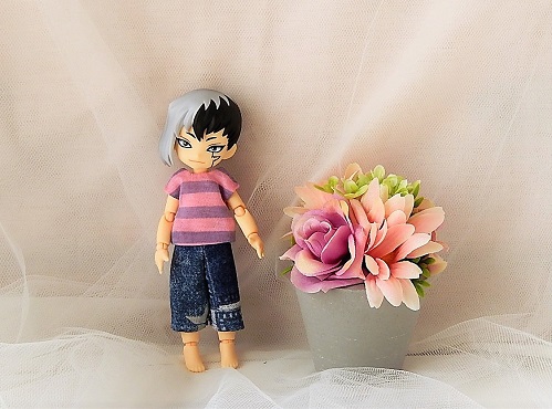 着せているのは昔ピコDにつくった簡単Tシャツと簡単パンツ。