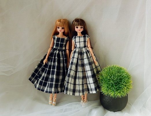 オールインワンの上身頃ワンピを、メルちゃんに使った前回と前々回の