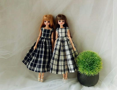 布でつくりました。リカちゃんには微妙に大きい音符柄もジェニーなら