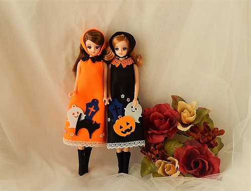 ワンピースの土台をつくり、リカちゃんにも使ったハロウィン