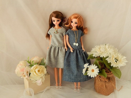 灰色のは膝丈にしてみましたが、少しスカートが広がりすぎたかな?