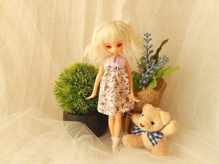 「今日からはじめるドール服LESSON」より、20cm用の手縫いワンピースです。