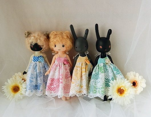 レース生地で穴が開いているので、ボディの白い子達に着てもらいました。