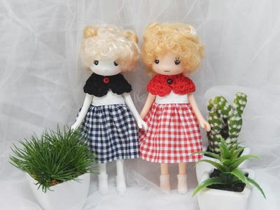 リカちゃん達とは色違いのチェックでジョシィ達にも簡単なワンピースを。