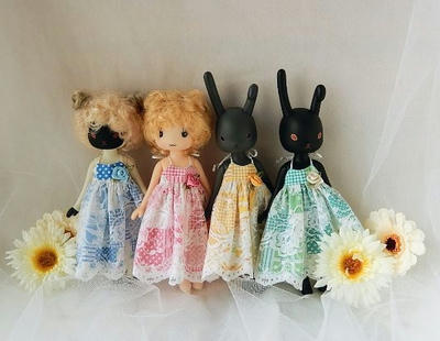 最初にこの布でつくったのはリカちゃんのワンピ。
