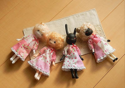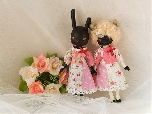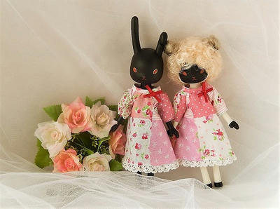 うさぎぃ025とひつじぃ002にも刺繍ワンピースをつくりました。