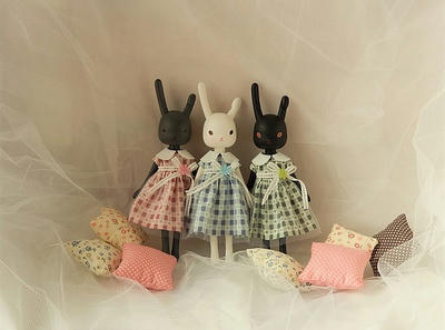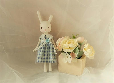 ブラウンのアーモンドアイと、ホワイトボディのうさぎぃです。