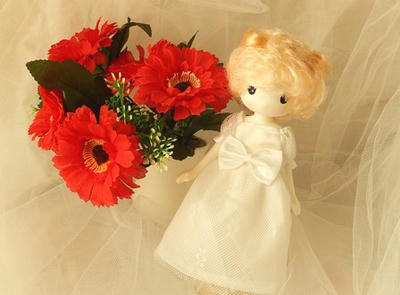 これは現行のものよりひとつ前の、エリーちゃんのウェディングドレス。