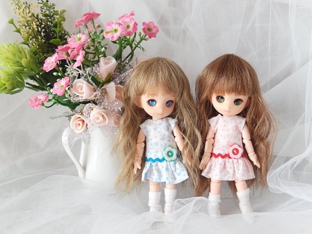 やはり「小さなお人形のためのDCR」より、Sサイズの簡単ワンピース。