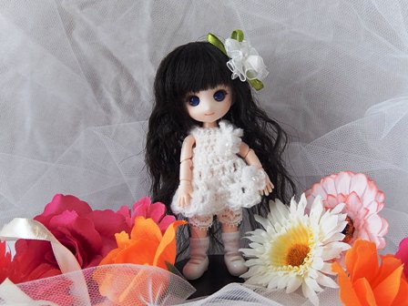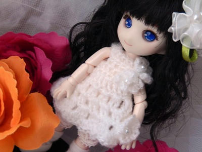 あちらこちらのサイト様や本を見ながら、オビツ11に合わせて編んだワンピ。