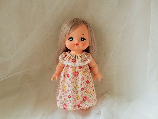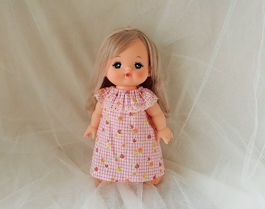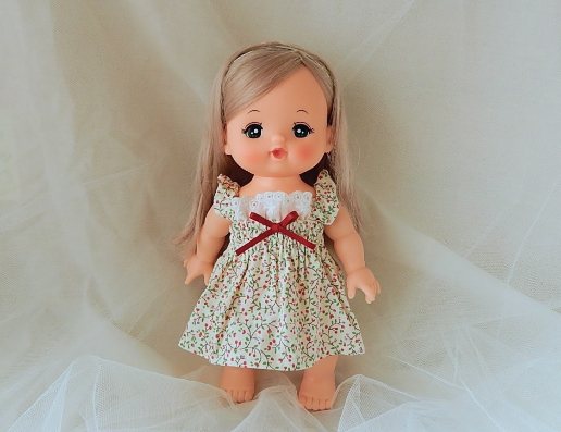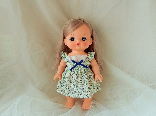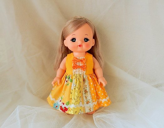 一枚しかないのでメルちゃんに。薄めの布で、夏服用だなと思っていた