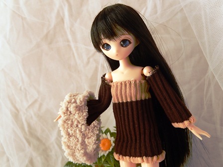 型紙を縮小してつくった27cm用サンドレスを着せていました。