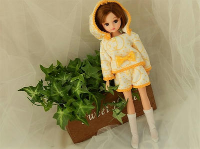 おかっぱ頭のピザーラリカちゃんに。髪の短いこの子は取り扱いが簡単なので、