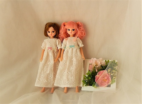 「ミニチュアサイズのワンピースとこもの」より、ネグリジェを縫いました。