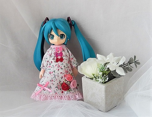 この布は一枚だけなのでミクさんに。ピンクが似合うと思って♪♪♪