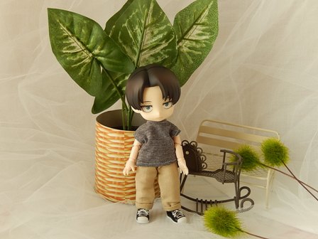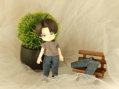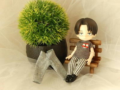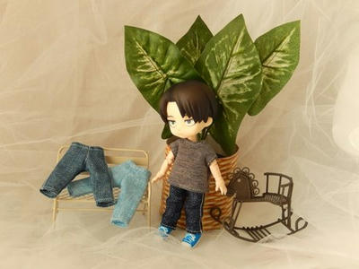 Tシャツとスカートは自作型紙の。おかしいなあ、兵長に着せた時は