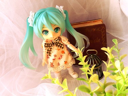 ミクさんに着て貰いました。たまには青系以外の服も、と思って。