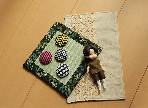 包みボタンも初挑戦。そのままコースターでも良かったんですが