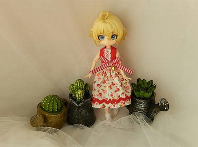 ピコS用だけあってMボディのデグさんには丈がちょっと短かったので、二段のティアードスカートを追加しました。